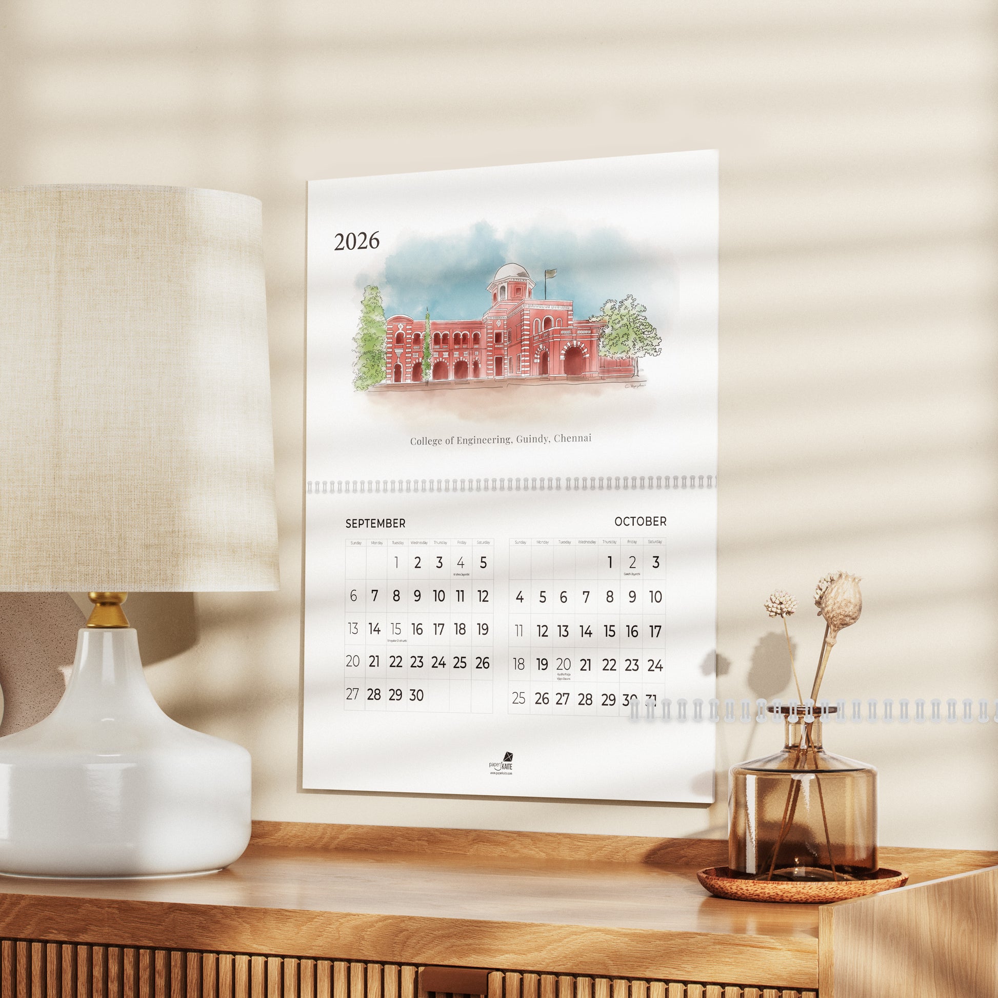 Bring home the charm of Chennai with the 2026 Wall Calendar – Madras Calendar, exclusively designed by Paper Kaite. Thoughtfully curated for those who hold “Namma Chennai” close to their heart, this wall calendar is more than a date-keeper—it’s a tribute to the city’s heritage, culture, and timeless beauty.